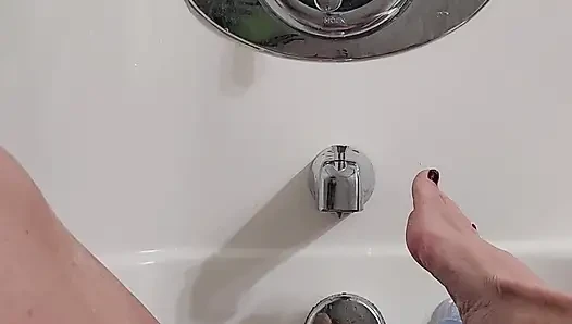 Ateşli orta yaşlı seksi kadının ayağını azdırıyor: parlak ayak parmakları ve büyük göt zevki